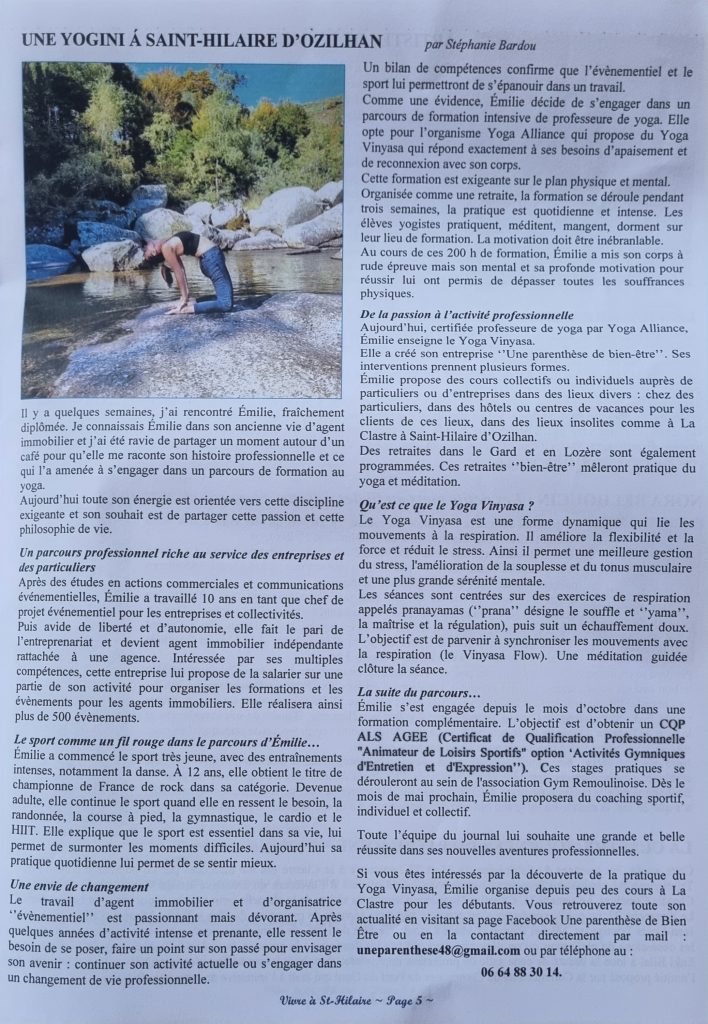 Une yogini à Saint Hilaire d'Ozilhan